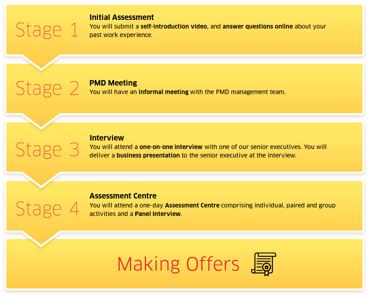 Offering a successful applicant a place in PMD takes serious consideration - we expect it to be a long-term commitment and investment for both Management Associates (MAs) and us. This is why we screen and select MAs scrupulously.